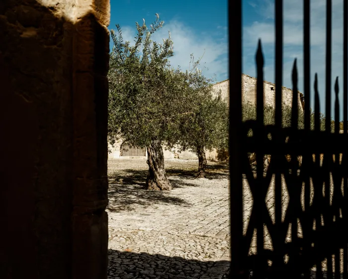 Intorno alla casa padronale si sviluppa un complesso architettonico comprendente ambienti di lavoro destinati ai più svariati usi, dallo straordinario palmento-cantina al granaio e al frantoio, dalle stalle ai cortili e alle officine. Un sistema di opifici che, nel loro insieme, costituivano un’azienda agricola funzionale e autosufficiente.