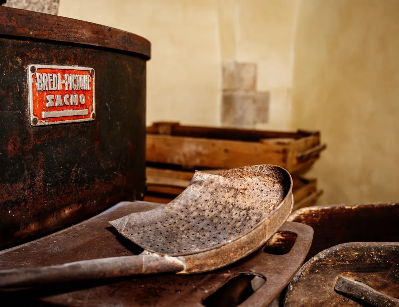 L’ambiente è di particolare interesse storico. Al suo interno sono visibili le tracce dell’evoluzione dei sistemi di produzione dell’olio d’oliva: da macina a trazione animale, torchio a vite e separatore per decantazione a macina a motore e presse idrauliche Breda-Pignone con brevetto Sacmo e separatore centrifugo.