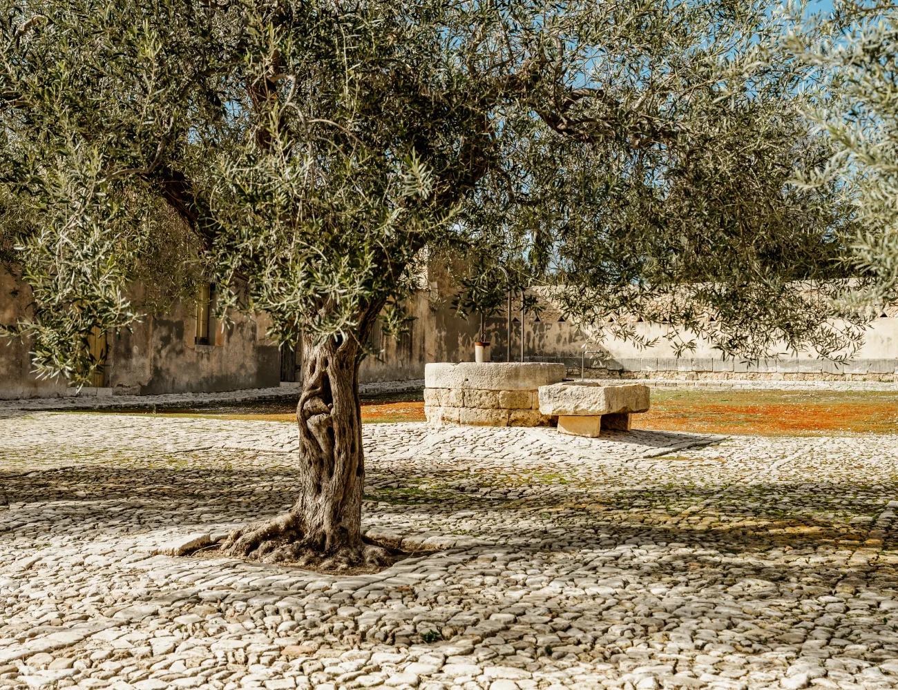 Ad est della casa padronale si trova il cortile più antico, contornato di stalle e laboratori come falegnameria, fucina e selleria, che rendevano l’azienda autosufficiente. Più prettamente destinato al lavoro che alla vita sociale, mantiene un fascino senza tempo, anche grazie alla bellezza degli ulivi secolari che ne scandiscono l’estensione.